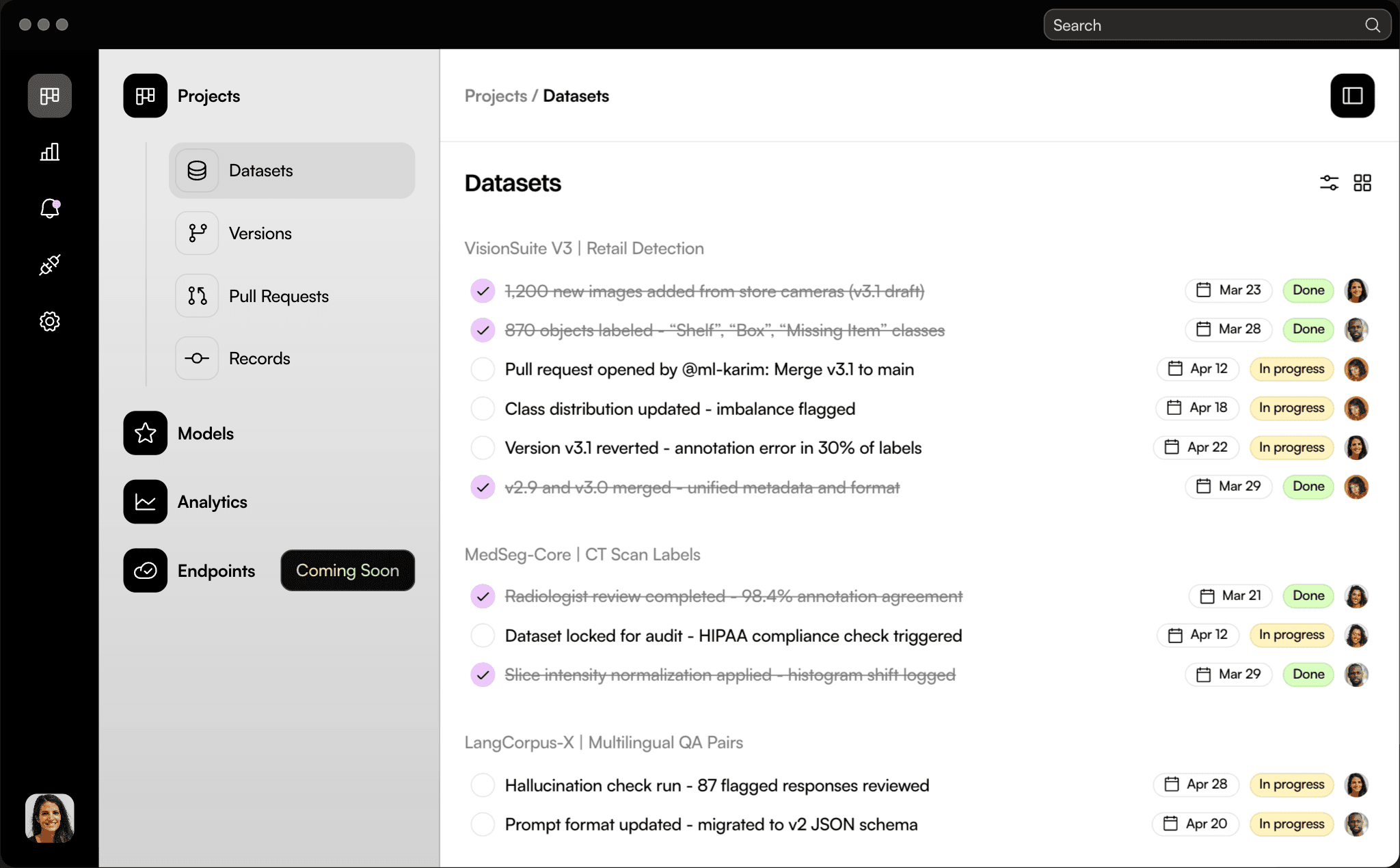 Track your progress with every dataset change. Set goals for quality, balance, and readiness and stay aligned as your team moves from raw data to perfectly trained model.